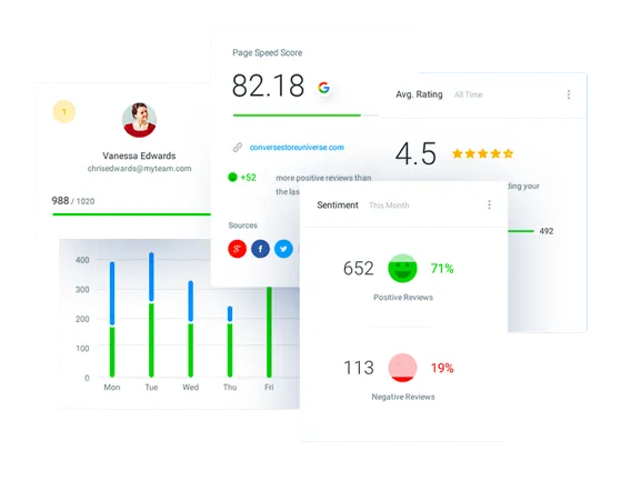 Comunica de manera eficiente con tus clientes a través de diferentes canales como Facebook, Instagram, WhatsApp, correo electrónico y Google, todo desde una sola plataforma